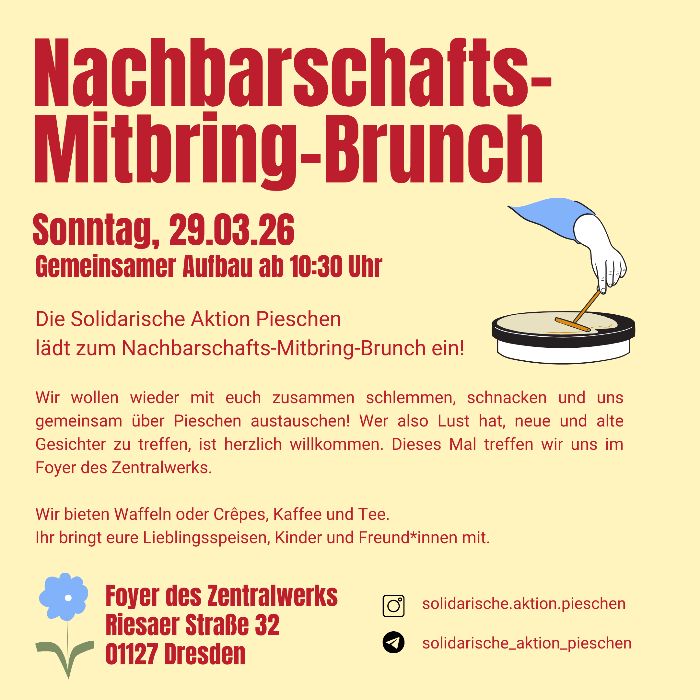Die Solidarische Aktion Pieschen lädt zum Nachbarschafts-Brunch ins Foyer des Zentralwerks ein!