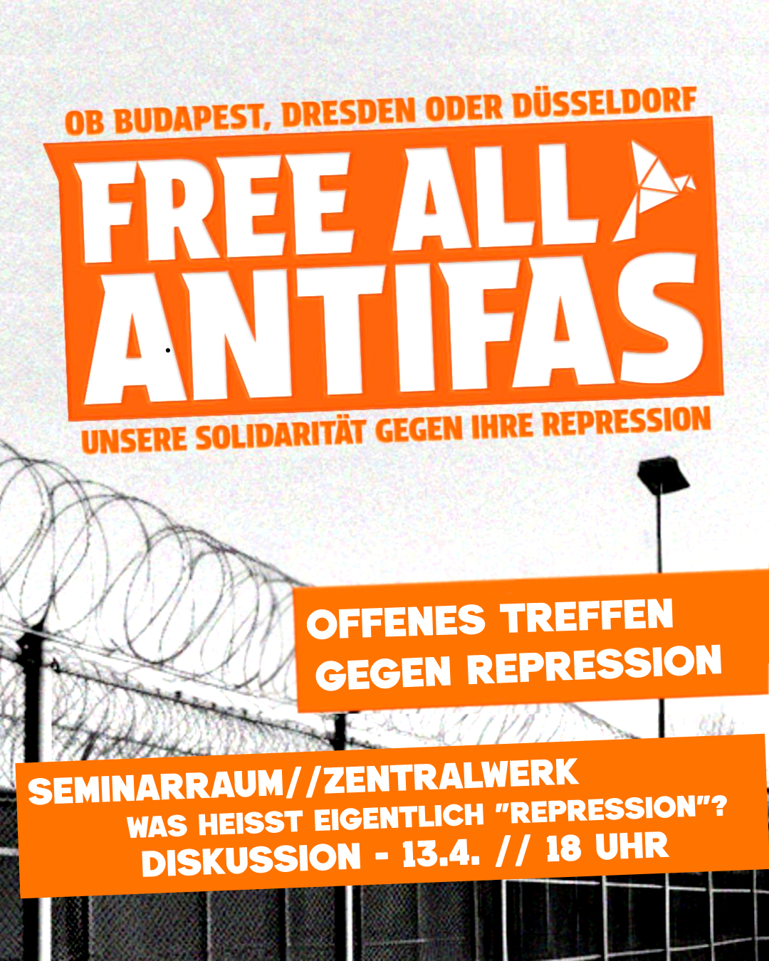 Am 13. April treffen wir uns um 18 Uhr wieder zum Offenen Treffen gegen Repression. Diesmal wollen wir ins Gespräch kommen, darüber was der Begriff „Repression“ eigentlich bedeutet. Was verstehen wir darunter? Ist jedes Bußgeld Repression? Oder ist Repression erst wenn die Bullen zu Hause vor der Tür stehen? Und was haben Demokratie und Kapitalismus mit Repression zu tun? Gibt es nur Repression gegen Linke? Und, wenn uns klar ist, was das sein soll, wie können wir uns dann dagegen wehren und uns schützen?! Zu alldem gibt es einen vorbereiteten Input. Im Anschluss an die Diskussion wollen wir noch darüber sprechen, wie die Offene Versammlung gegen Repression weiter gestaltet werden soll.